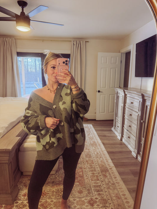 Oversized Camo Cardigan